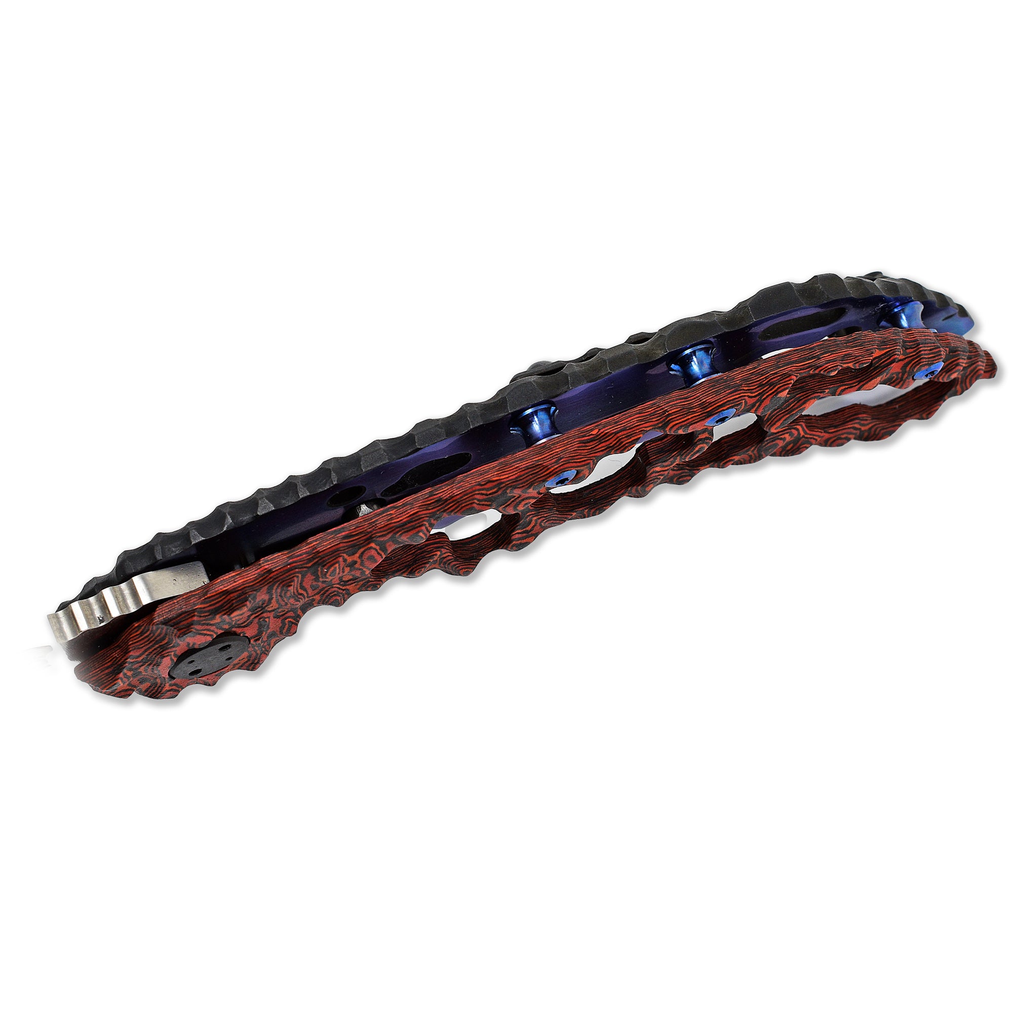 • Aphotic Black titanium lock side with Molten sculpting + Funky Holes