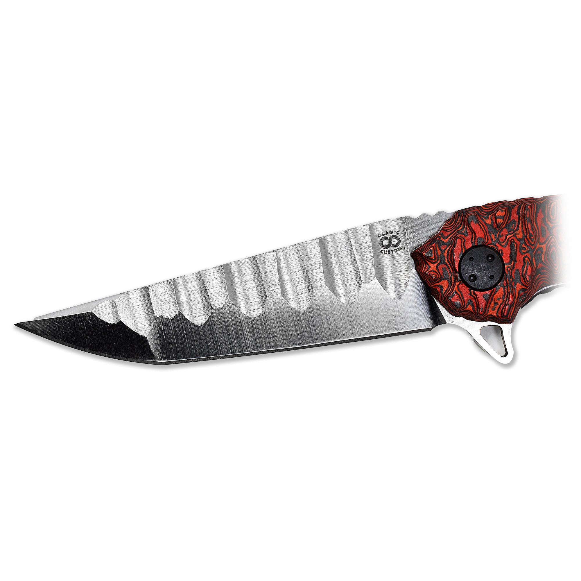 Featuring an S90V Tanto blade with a Scalloped spine, paired with a hybrid carbon fiber + Aphotic Black titanium handle in Olamic’s dramatic Molten sculpting with Funky Holes, this is a bold and highly customized 247 variant without the added weight of a backspacer.