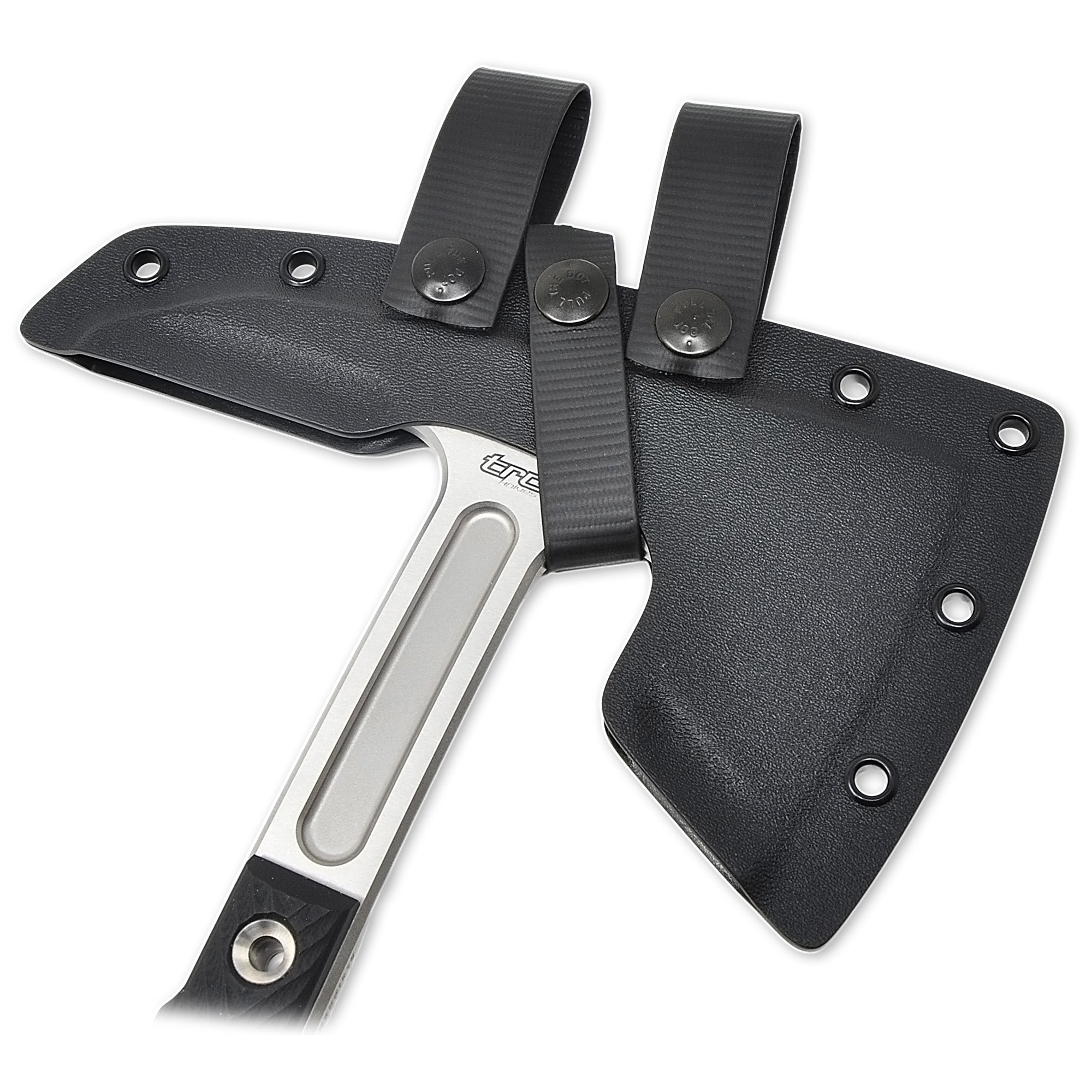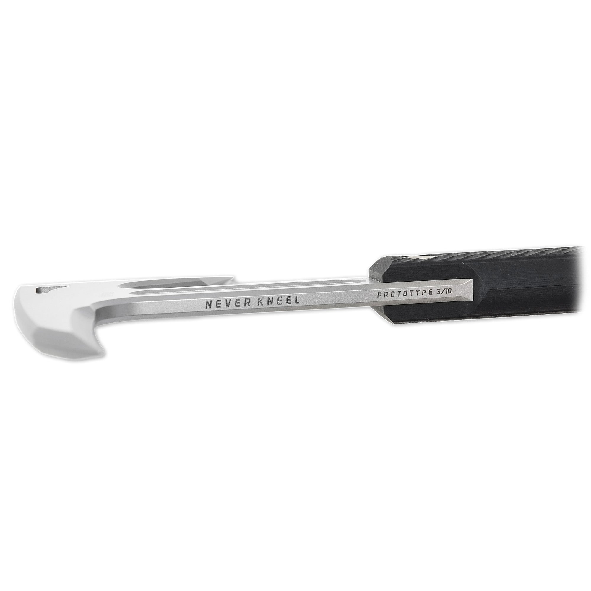Weighing in with Viking muscle but moving with surprising agility, the NeverKneel has been tested on wood, metal, drywall, car bodies, and glass — and passed savagely. The included carbon-pattern Kydex® sheath offers fast access and modern protection.