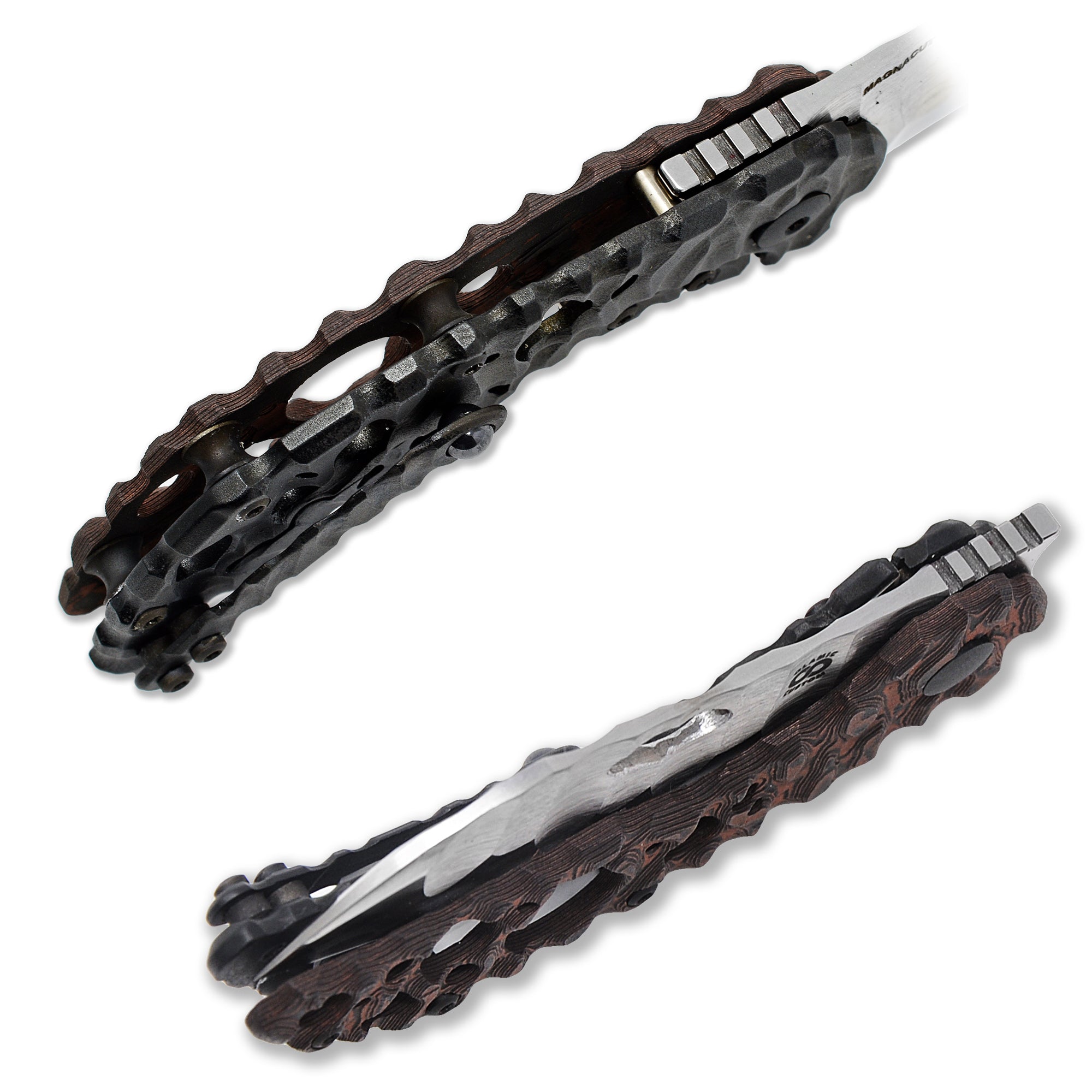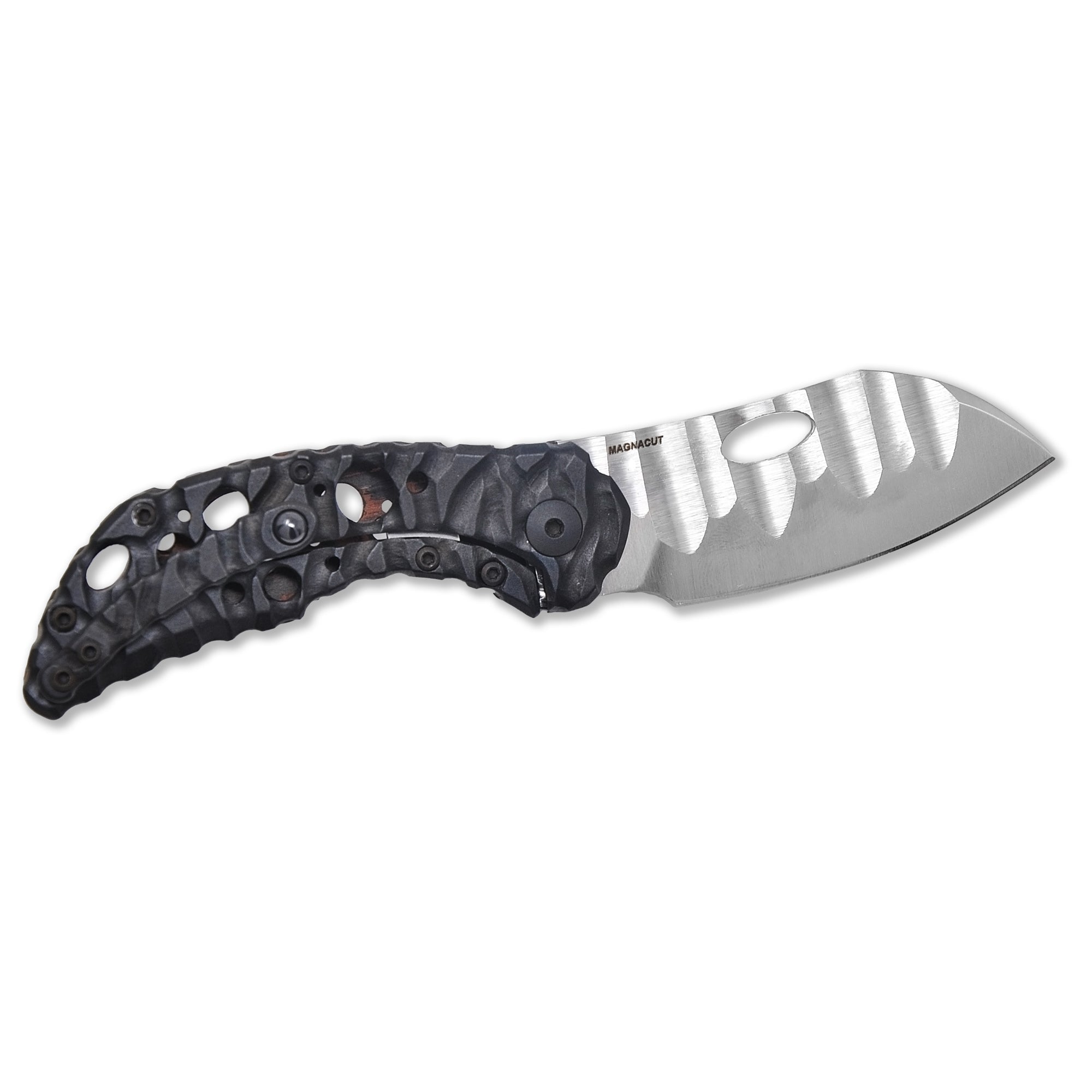 This custom build features a Magnacut Laro blade, dual-material handle (carbon fiber + Aphotic Black titanium), and Olamic’s signature Molten sculpting with Acid Rain holes — all at just 1.95 oz.