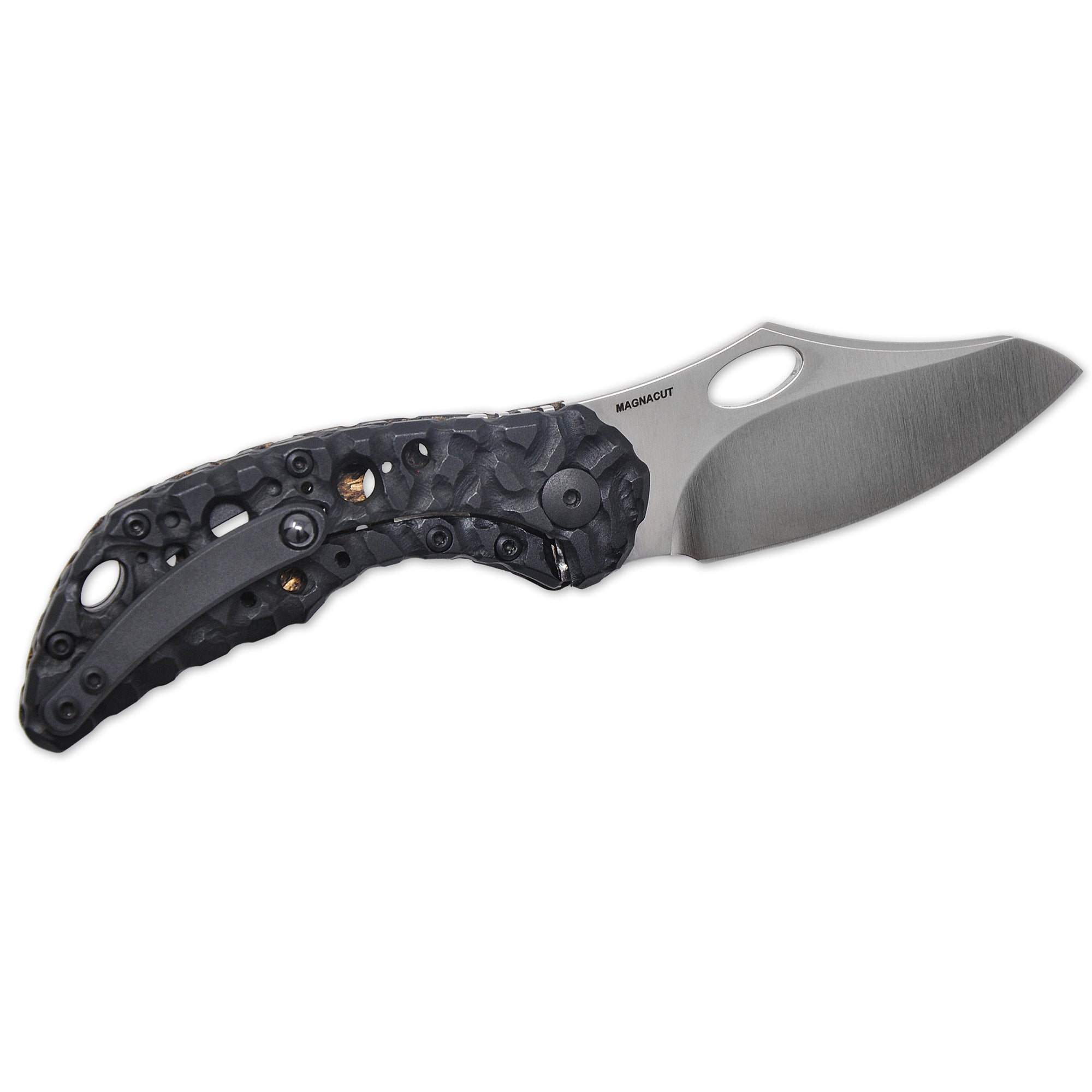 The Olamic Busker Featherweight delivers refined craftsmanship in one of the smallest and lightest custom folders Olamic produces. This variant features a Magnacut Semper blade, dual-material handle (carbon fiber + Aphotic Black titanium), and full Molten pattern sculpting — now with a matching backspacer for a unified finish.