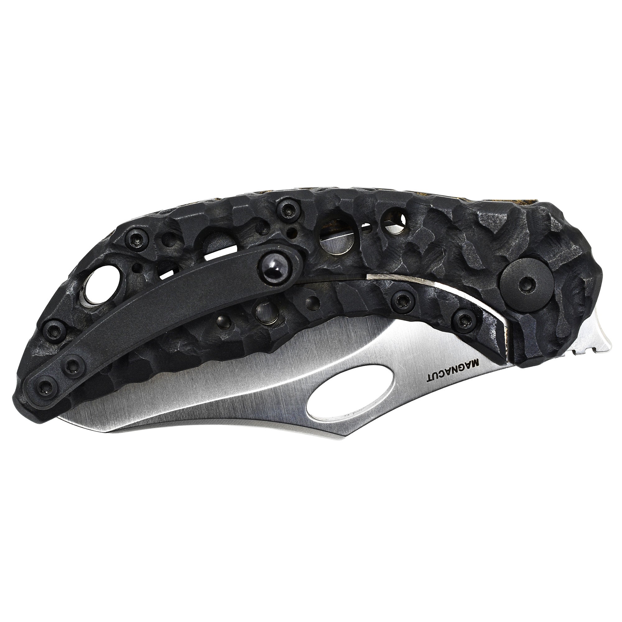This configuration features a CPM Magnacut Semper-profile blade in a clean satin finish, offering excellent corrosion resistance and edge retention in an ultra-compact cutting tool.