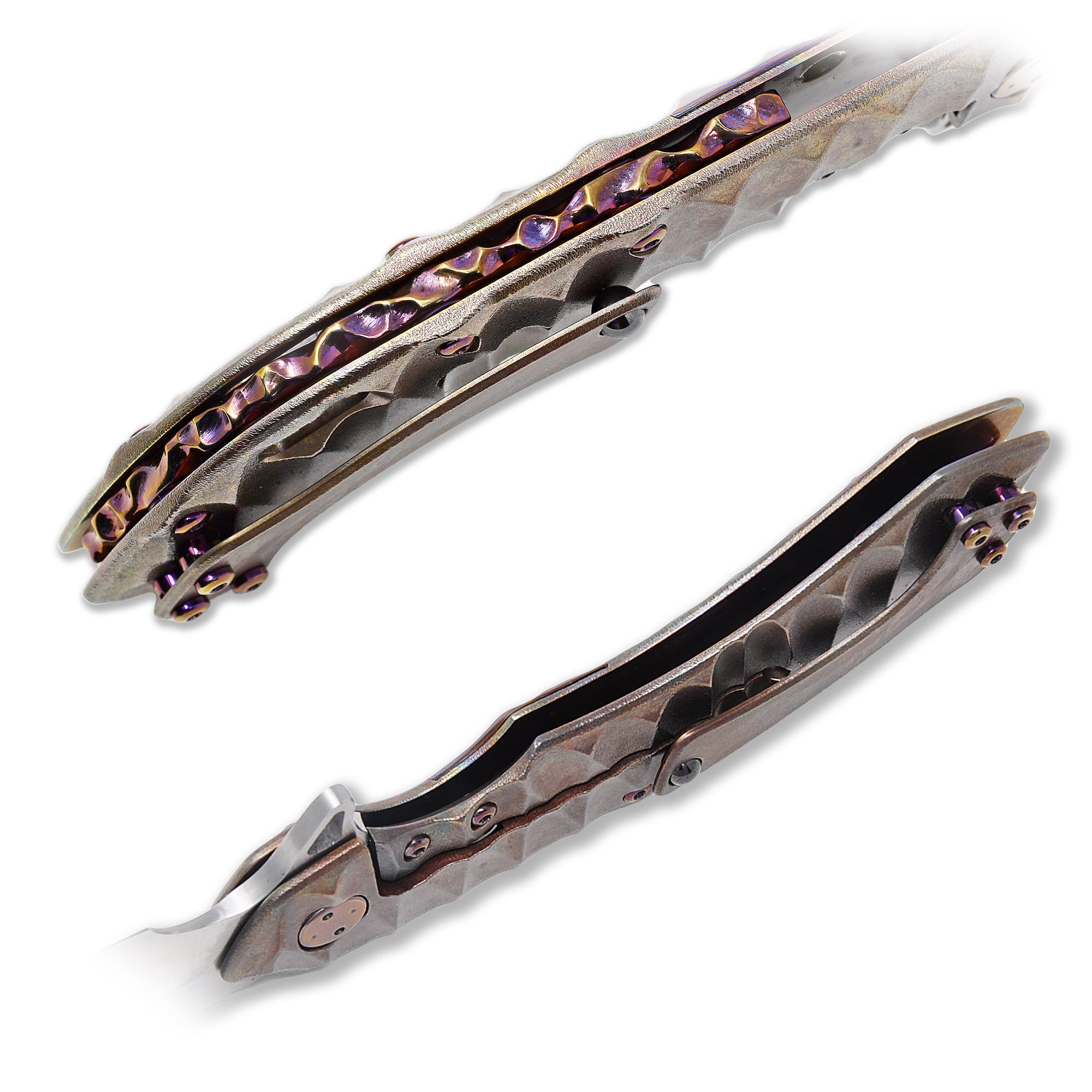 Handle material: 6AL-4V Titanium (Scalloped), Timascus inlay