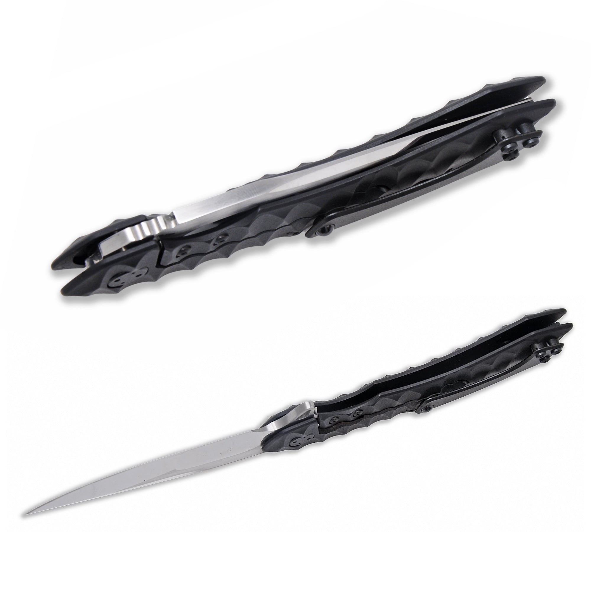 The titanium handle is sculpted in the slim and ergonomic Scalloped pattern, finished in deep Aphotic Black, a dark, rich tone that gives the knife a modern, stealthy aesthetic.